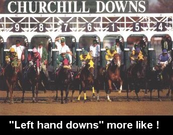 Whatever other problems Unsteady Bill had, they certainly didn't extend to his genitals and he proved to be a very productive sire. However, when his first crop of foals were born, people began to notice that they all had the same physical peculiarity, yes you've guessed it, their right legs were an inch longer than their left ones. A closer examination of Unsteady Bill revealed the truth, though given the sheer number of mares that he had covered in the preceding months, it was a bit late to do anything about it.